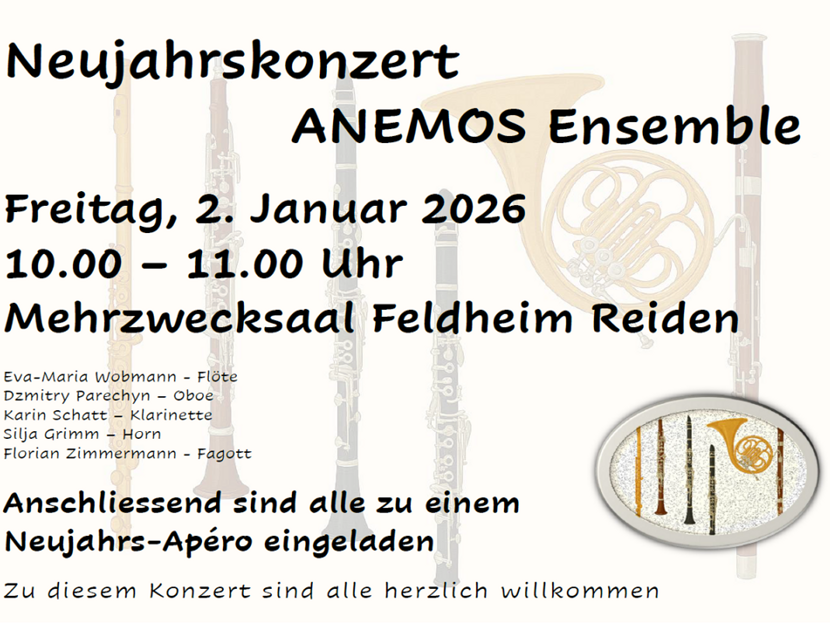 Die heiteren Klänge des Anemos Quintett begleiten Sie beschwingt ins Neue Jahr.